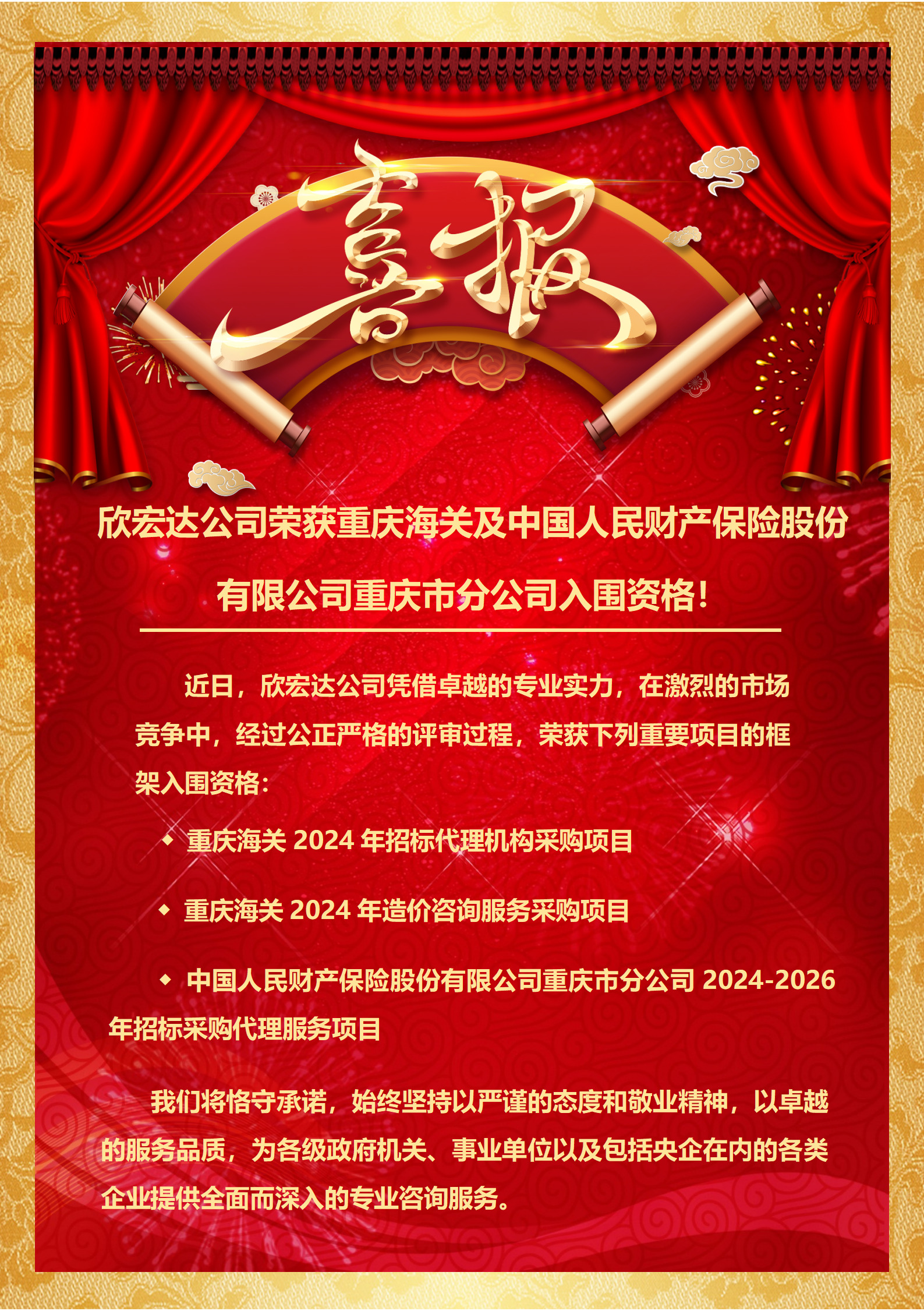 【喜訊】欣宏達(dá)公司榮獲重慶海關(guān)及中國人民財(cái)產(chǎn)保險(xiǎn)股份有限公司重慶市分公司入圍資格!